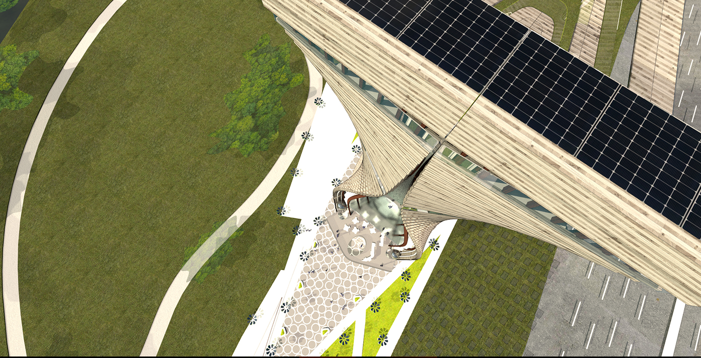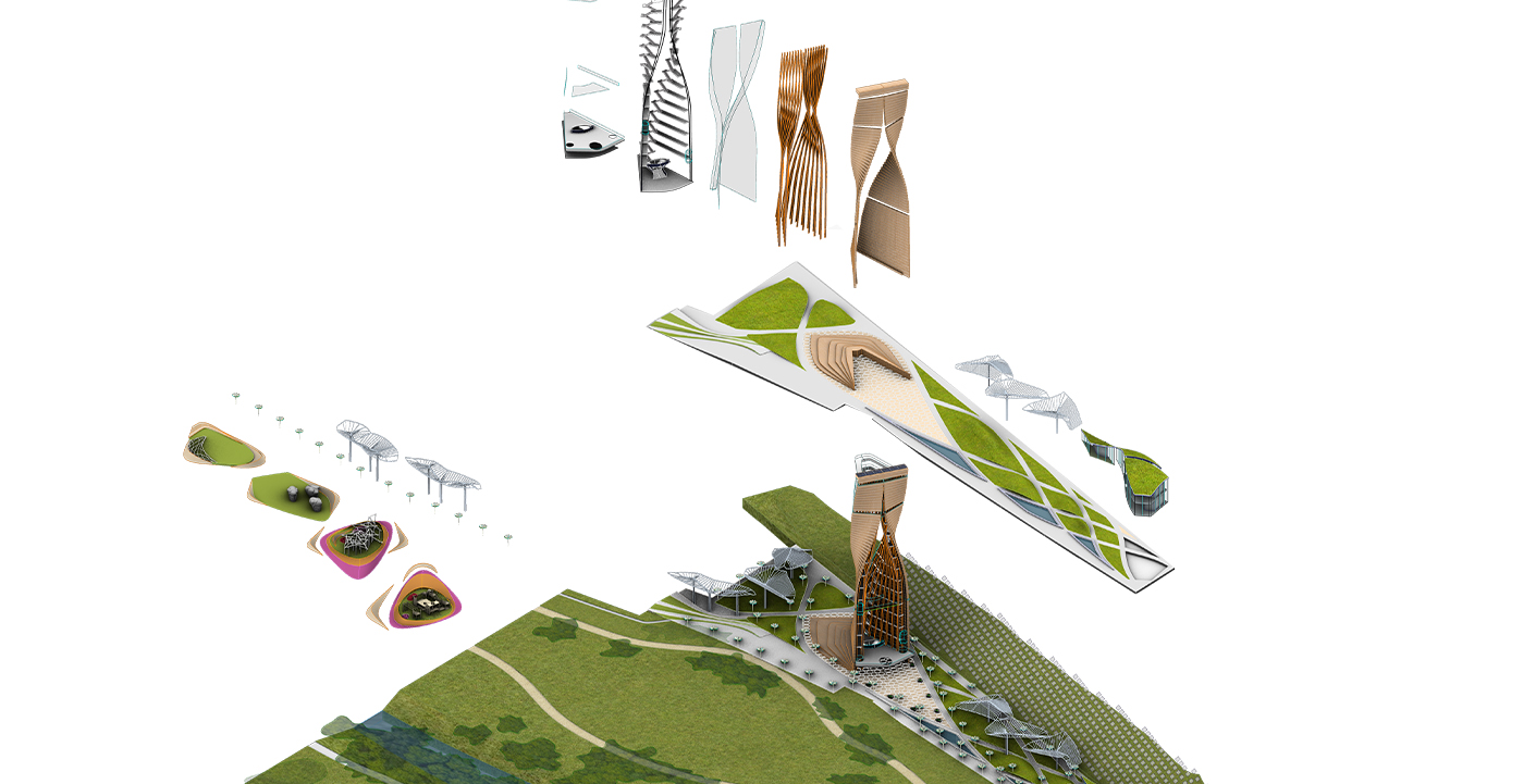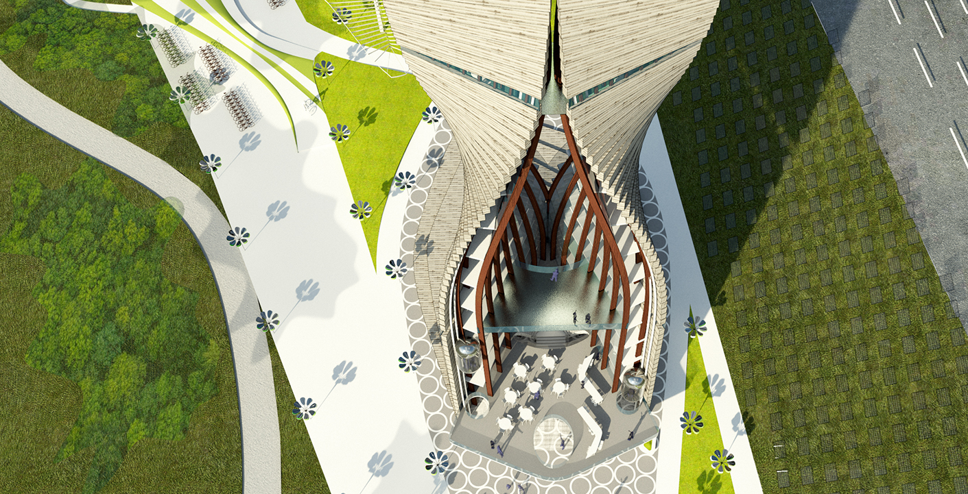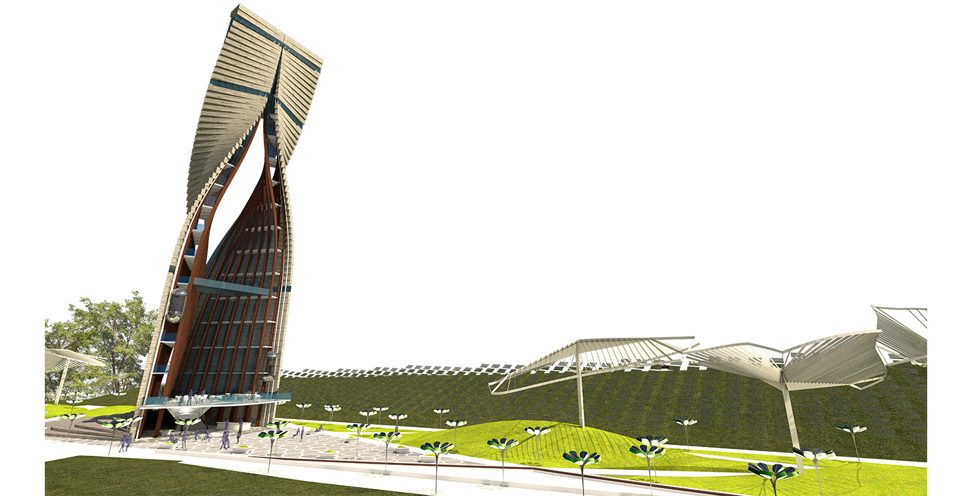 The project aims to express a culture which is forward looking, contemporary and technologically cutting edge while harnessing the importance of place and natural ecosystems. A net-zero proposal that uses solar powered elements for all lighting and energy requirements and timber as the main construction material for the iconic tower. Timber’s aesthetic quality speaks to our environment; it absorbs carbon thus impacting positively in our climate as well as having highest load-bearing capacities. All wood types would be from ecologically managed forests.