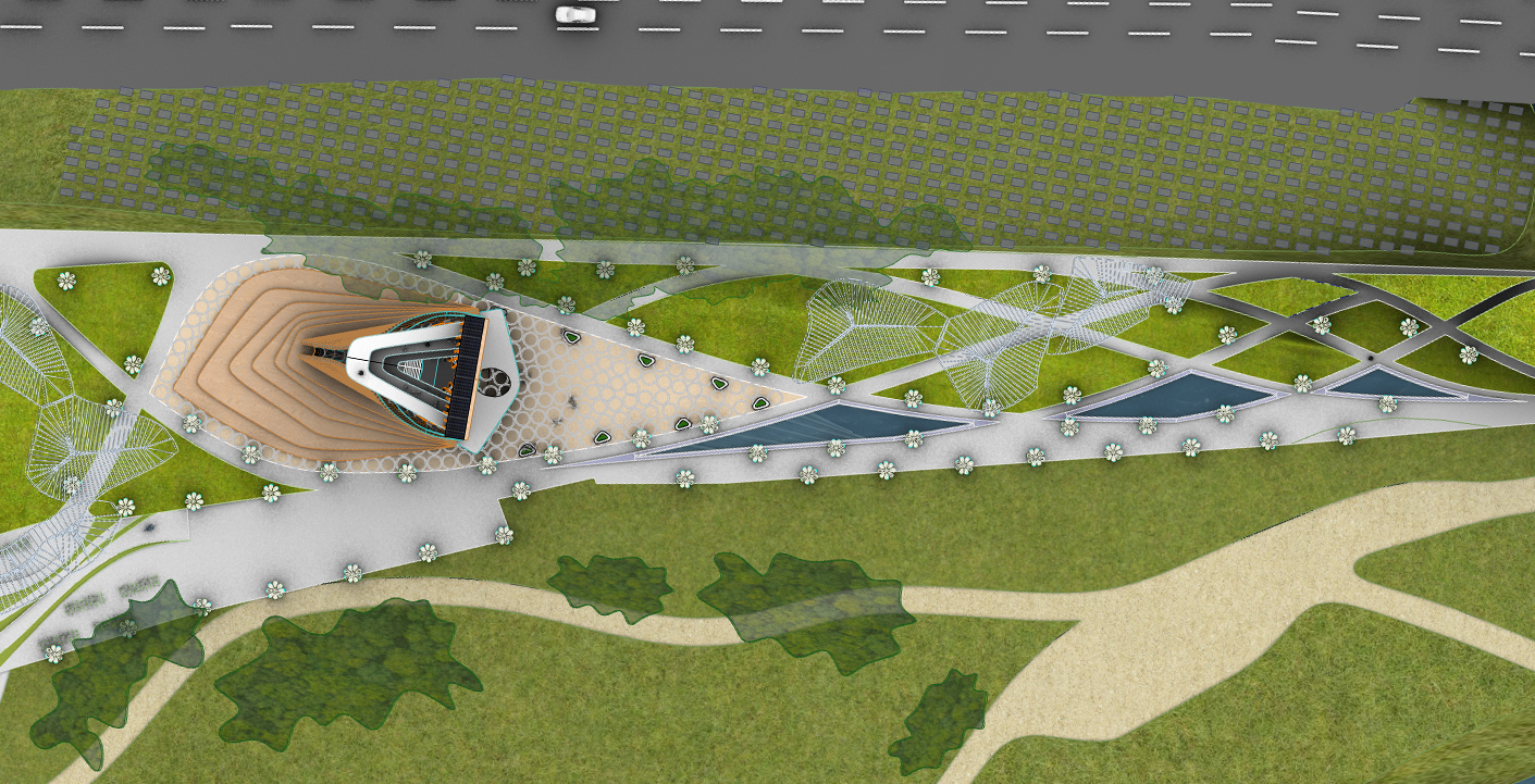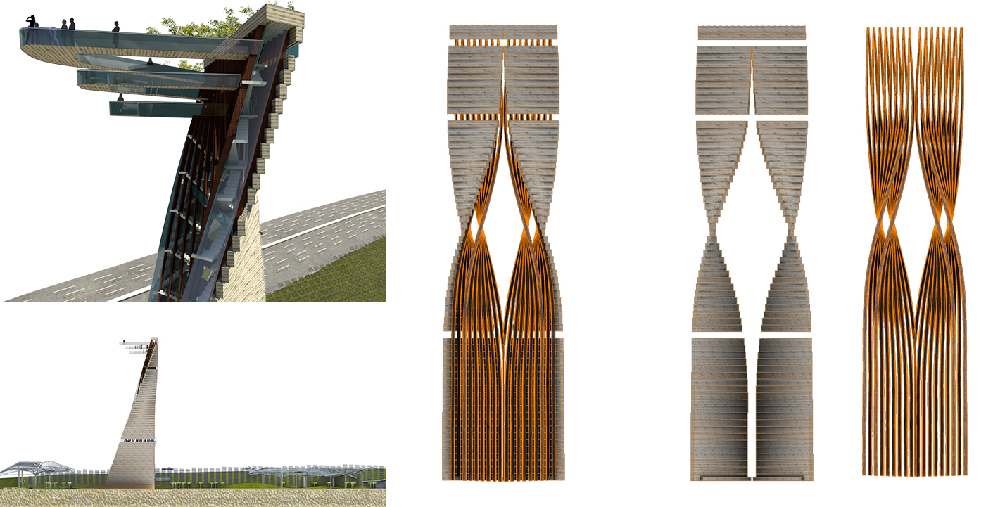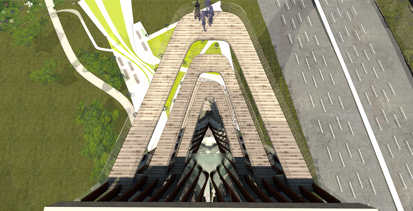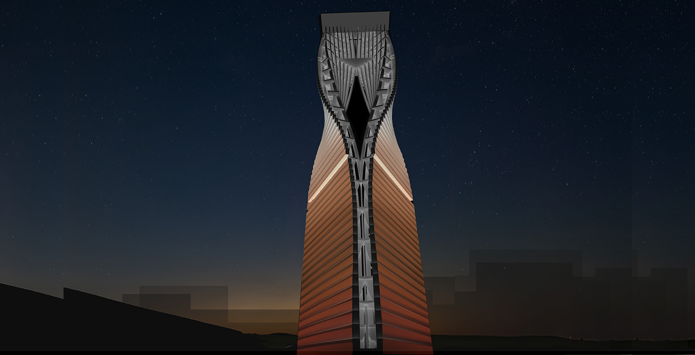 The project aims to express a culture which is forward looking, contemporary and technologically cutting edge while harnessing the importance of place and natural ecosystems. A net-zero proposal that uses solar powered elements for all lighting and energy requirements and timber as the main construction material for the iconic tower. Timber’s aesthetic quality speaks to our environment; it absorbs carbon thus impacting positively in our climate as well as having highest load-bearing capacities. All wood types would be from ecologically managed forests.